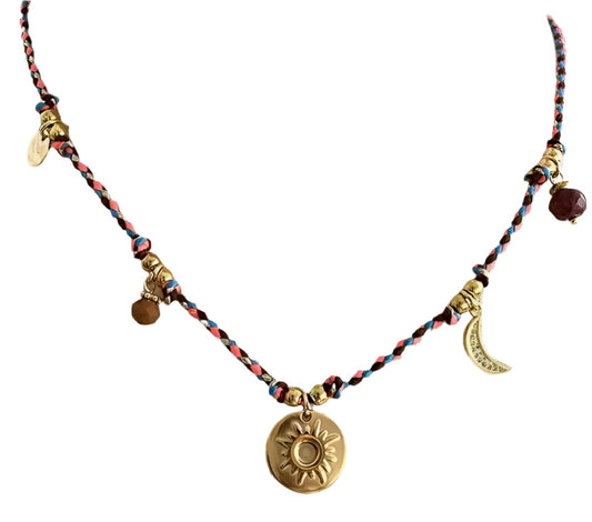 Boho bijou necklace - Blue / Pink