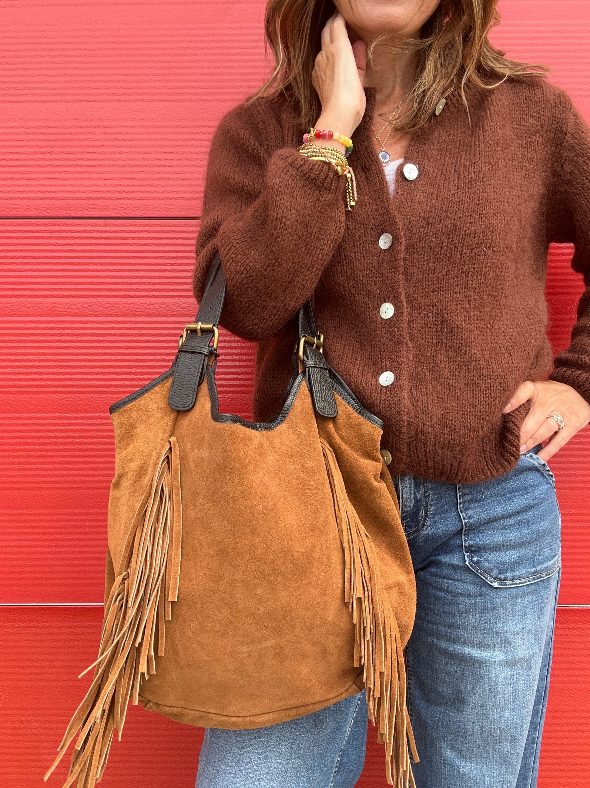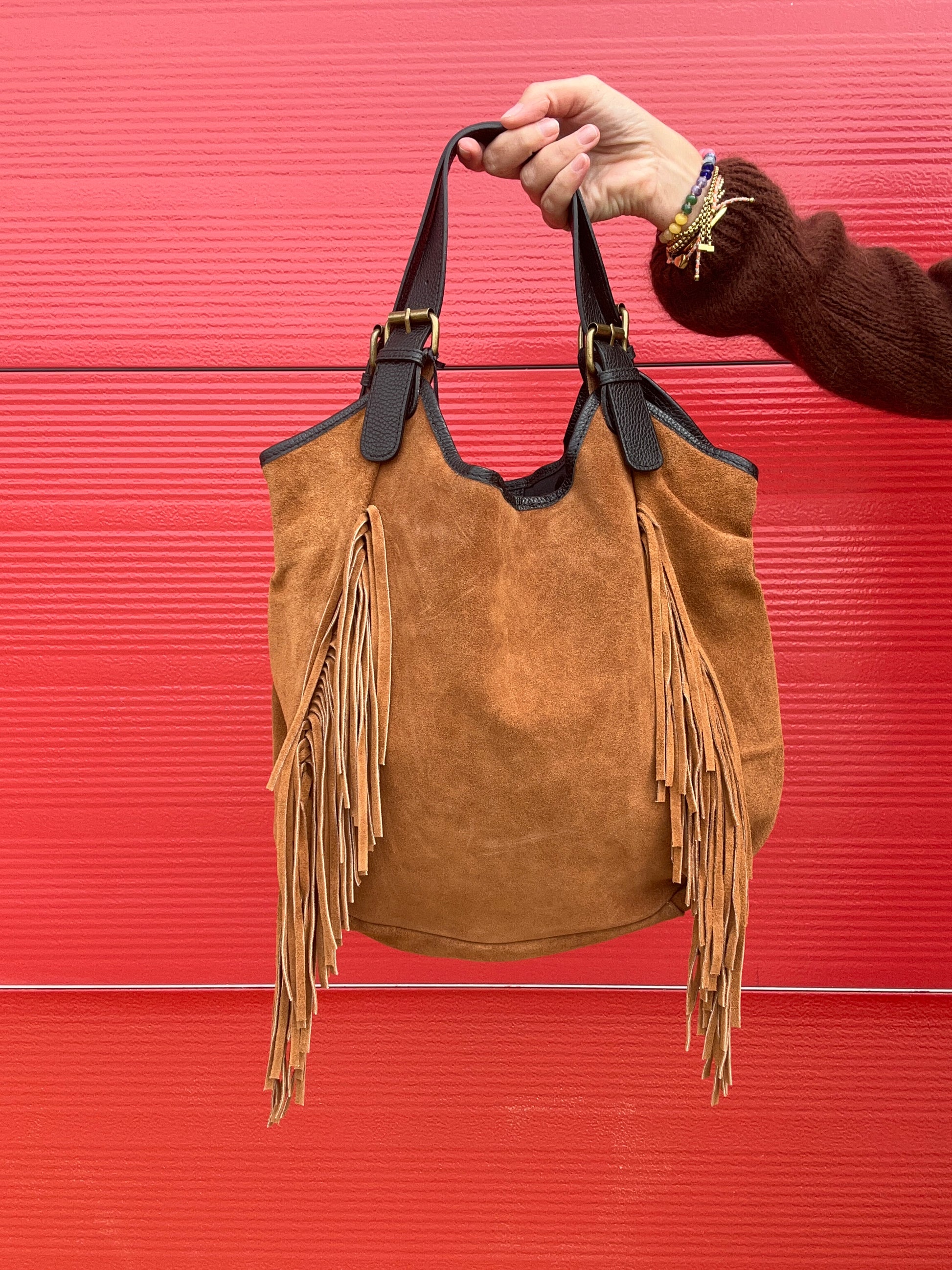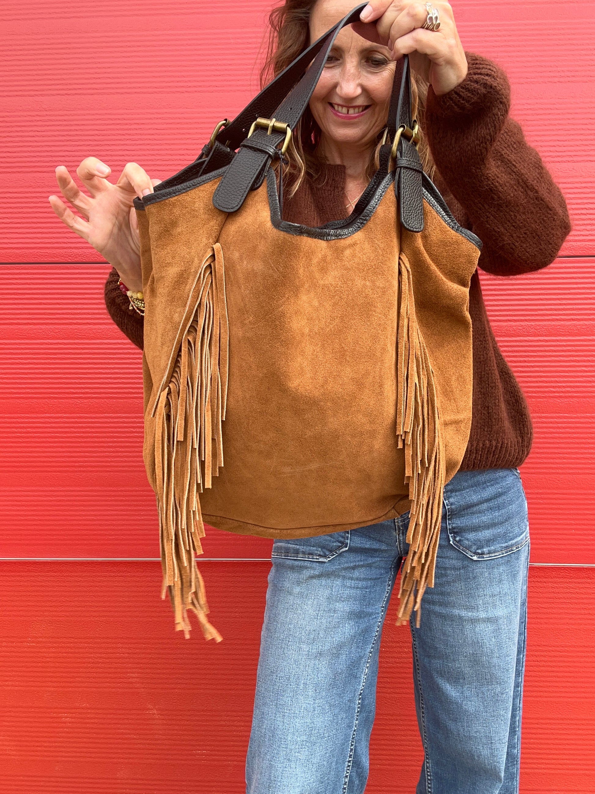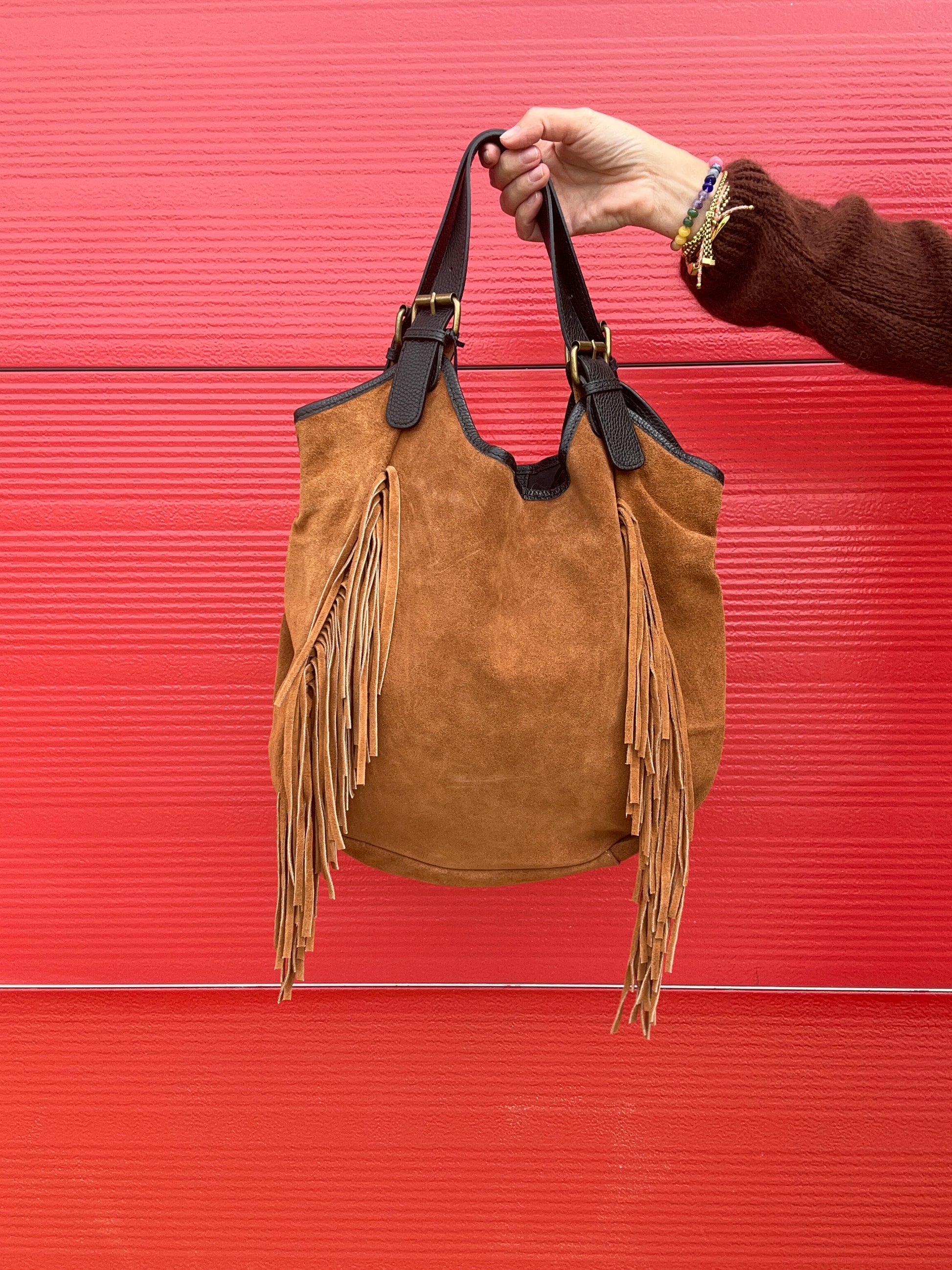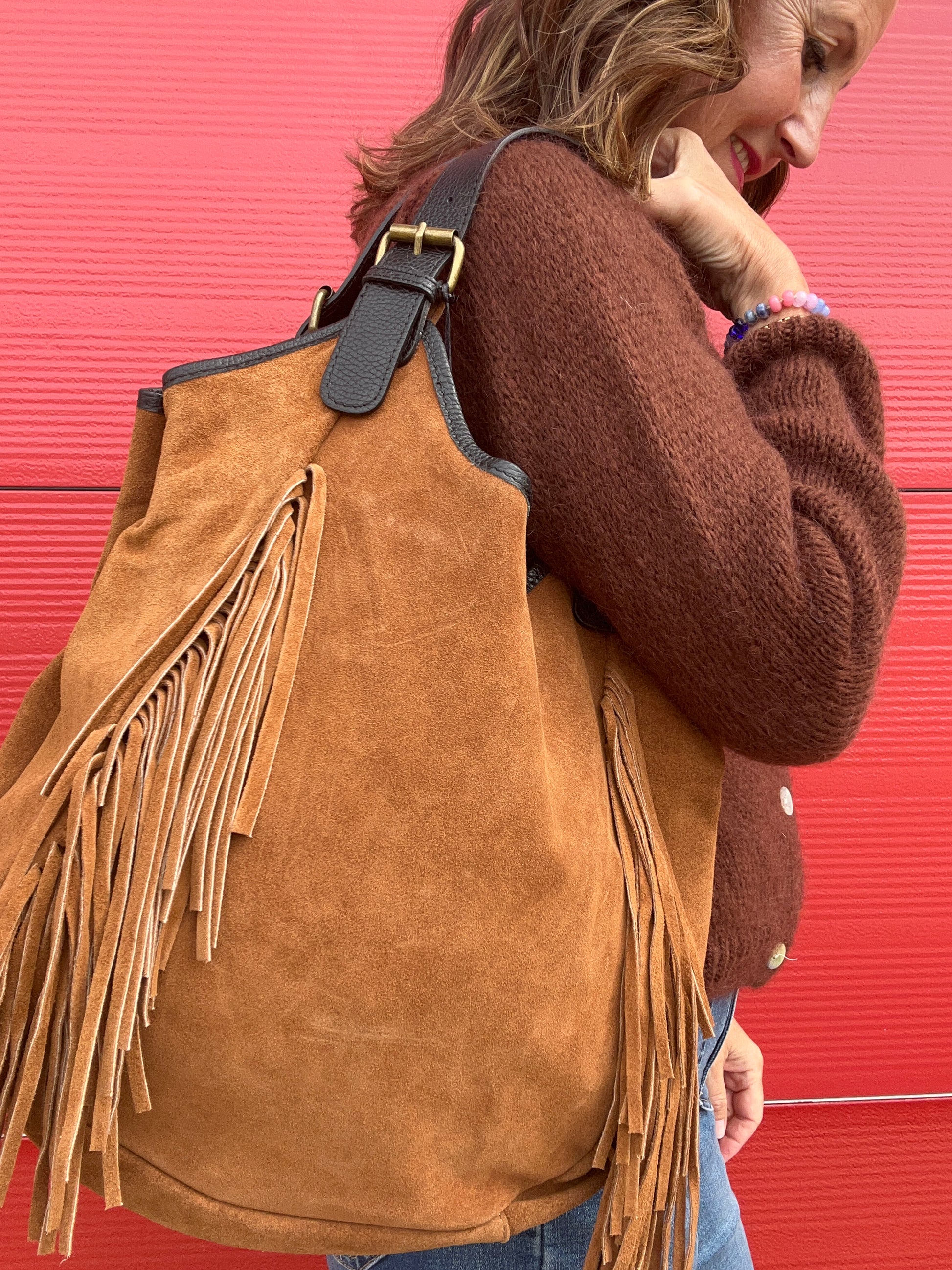 Suede is big news again this Autumn. The Beth fringed bag is one of my favourite new pieces. Strong and sturdy like her namesake (Beth from Yellowstone) with chunky leather buckle straps which feel lovely to touch. Inside there is heaps of storage with 2 separate compartments and an inner zipped pouch and a place for your phone. The cool tassel fringing is bang on trend this season and has real Free People vibes.