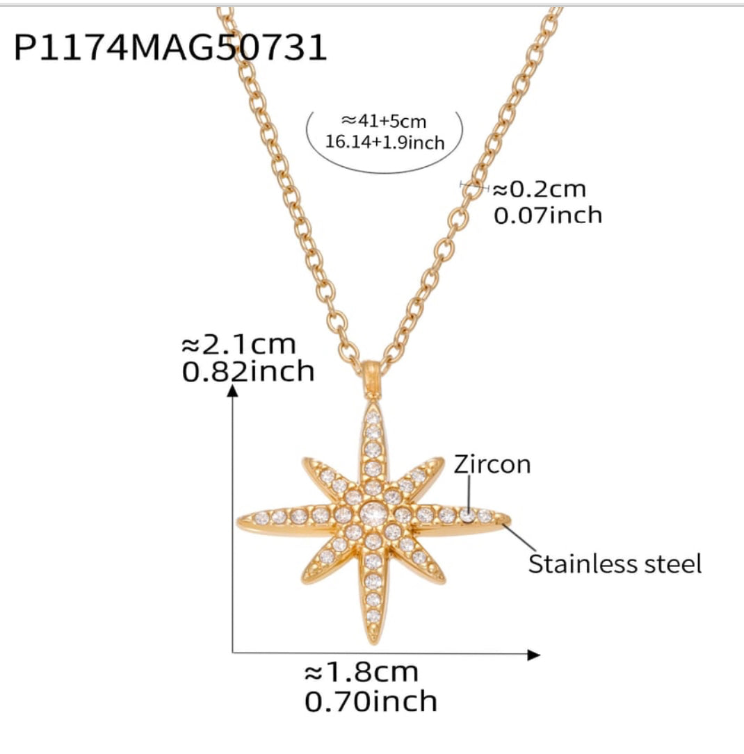 I love the sparkly star on this necklace. Shimmering cubic zirconia 8-point star charm on simple link chain.