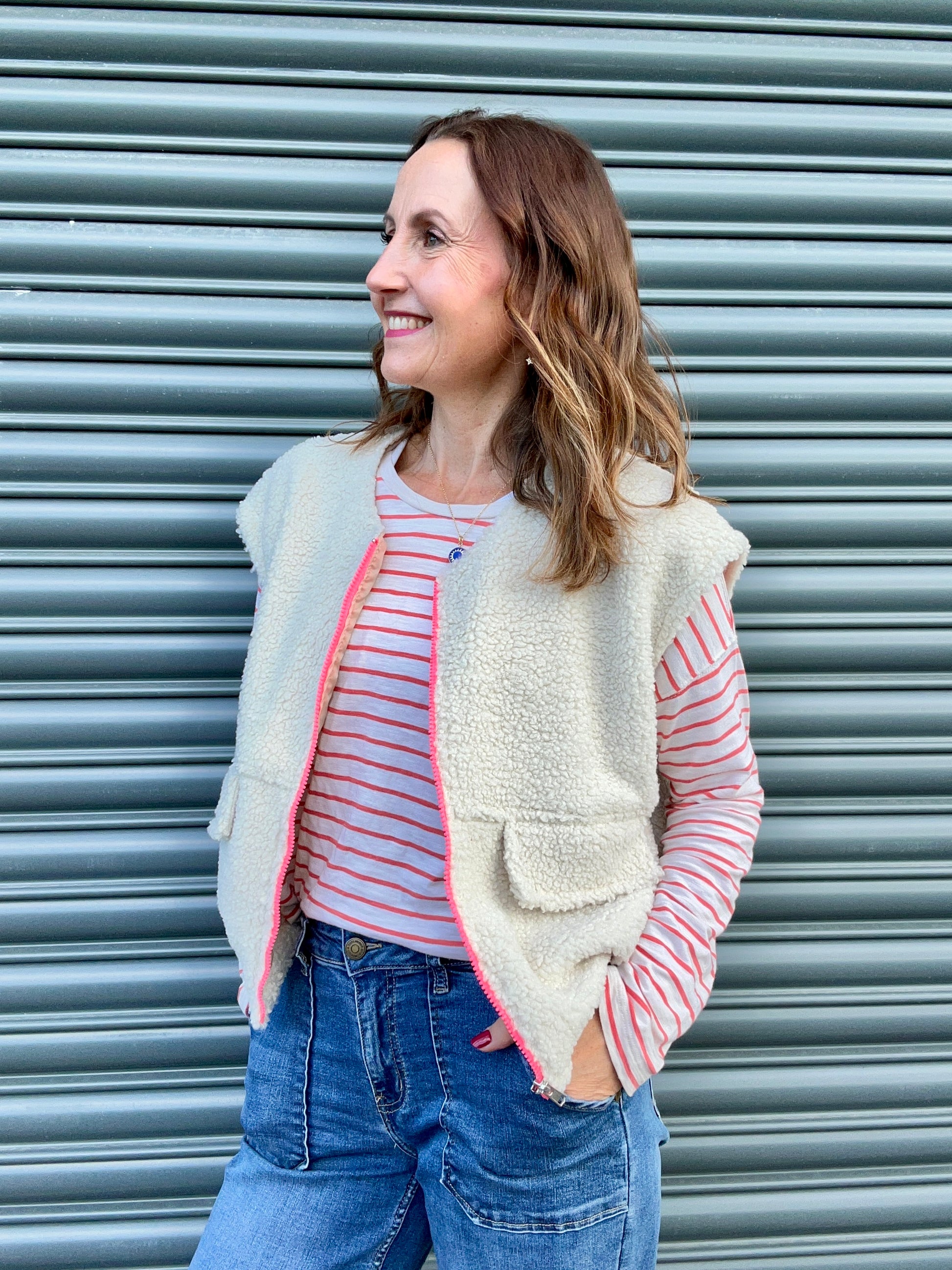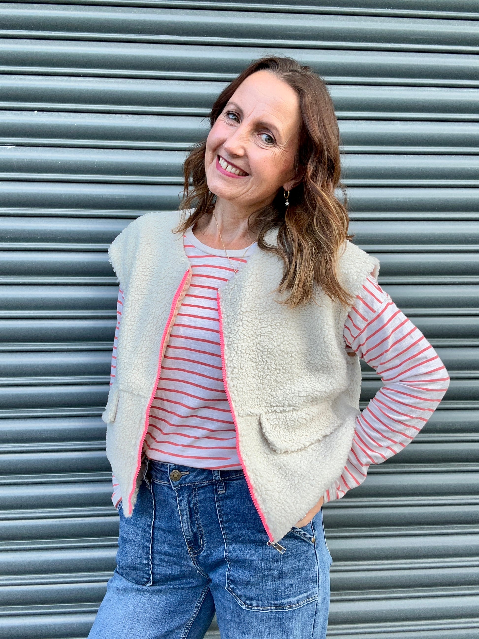 Teddy is a fab transitional piece which feels like a hug! Worn with my Duffy jeans and a stripey tee but goes with literally anything.